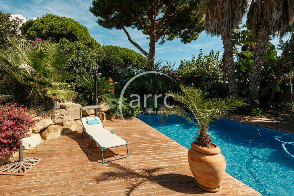 Espectacular casa unifamiliar con piscina y vistas al mar, a la venta en Can Teixido, Alella. Disfruta del estilo de vida mediterráneo en esta propiedad ubicada en la exclusiva zona residencial.