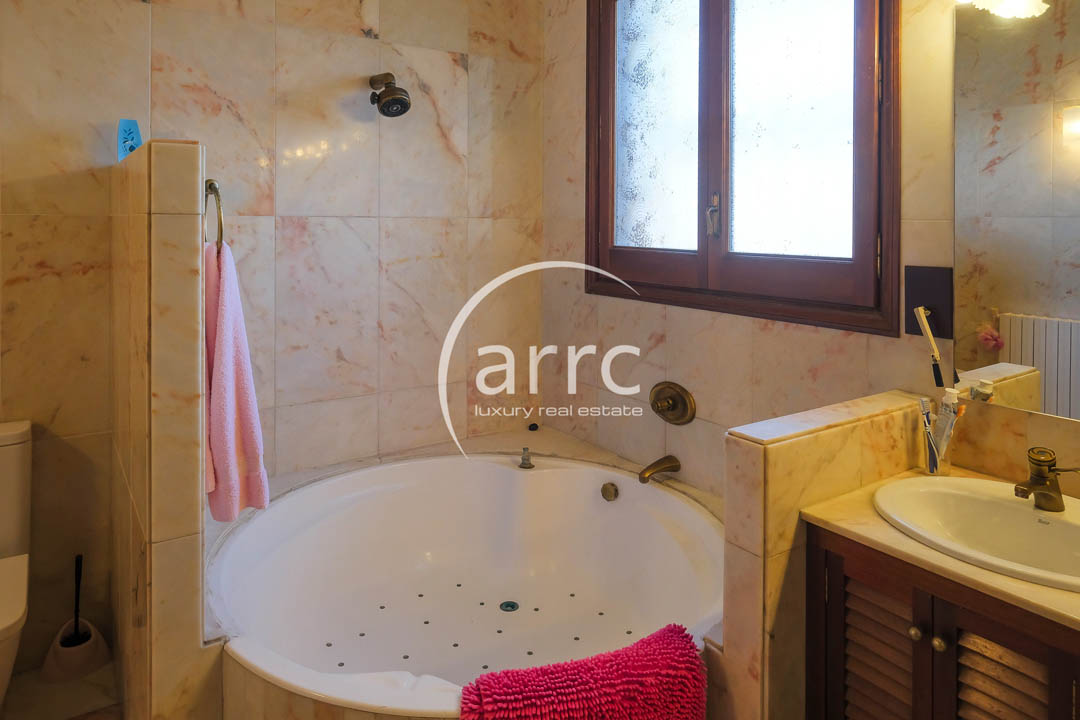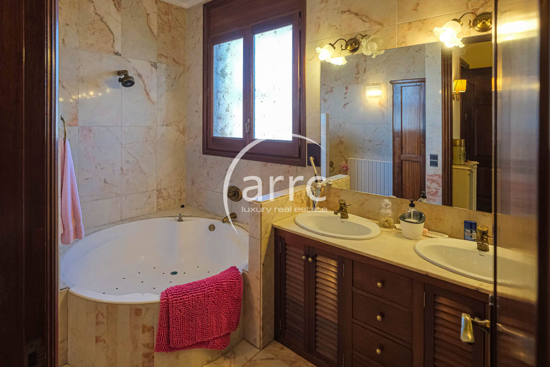 La propiedad cuenta con 3 habitaciones dobles, todas equipadas con armarios empotrados, y una suite con jacuzzi perfecta para relajarte después de un largo día. La cocina office de 25m2 es un espacio funcional y acogedor, mientras que el salón comedor de 50m2, con porche y acceso directo al jardín, se convierte en el lugar ideal para compartir y disfrutar de la tranquilidad e intimidad que brinda la zona.